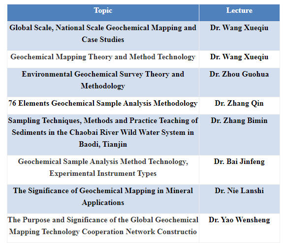 2019年面向发展中国家的地球化学填图与环境地球化学调查培训课程